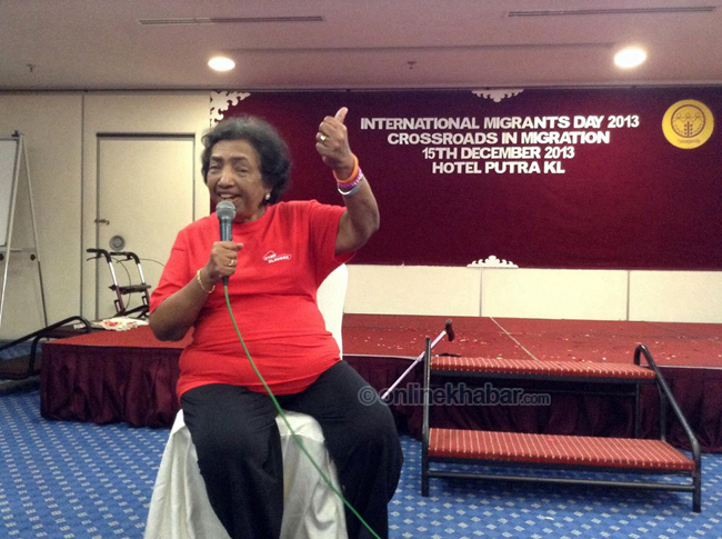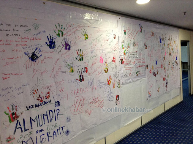 उहाँले भन्नुभयो,’आफू पीडित वनेको कुरा आफै वोल्नु पर्छ । हामी अधिकारकर्मीहरु तपाईहरुको साथमा छौँ । कार्यक्रममा नेपाल, बंगलादेश, इण्डोनेसिया, भियतनाम, लगायतका मुलुका श्रमिकहरुको उपस्थिति रहेको थियो । कार्यक्रममा विभिन्न देशका श्रमिकहरुले आ-आफूलाई परेका समस्याहरुको वारेमा प्रकाश पारेका थिए । कार्यक्रममा विभिन्न देशका श्रमिकहरुले मलेसियामा भागेका पीडा र यातनाहरुलाई डकुमेन्ट्री प्रदर्शन गरिएको थियो । कार्यक्रममा नेपालीहरुले स्वदेशी गित र नाचँहरु प्रस्तुत गरेका थिए ।